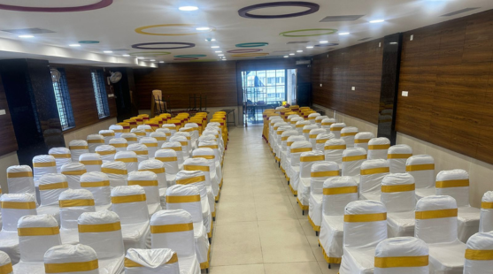 Yuvan Hall is well suited for corporate meetings, seminars, conferences, and official events. Equipped with advanced audio-visual systems and a spacious stage, the hall provides a professional environment ideal for business discussions and formal gatherings.